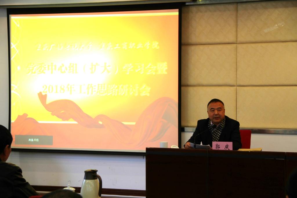 在学校2018年第一次党委中心组(扩大)学习会暨2018年工作思路研讨会上,党委书记郭庆再次领学党的十九大精神,强调要把习近平新时代中国特色社会主义思想学深学透、学以致用,切实把握学校发展的新时代。