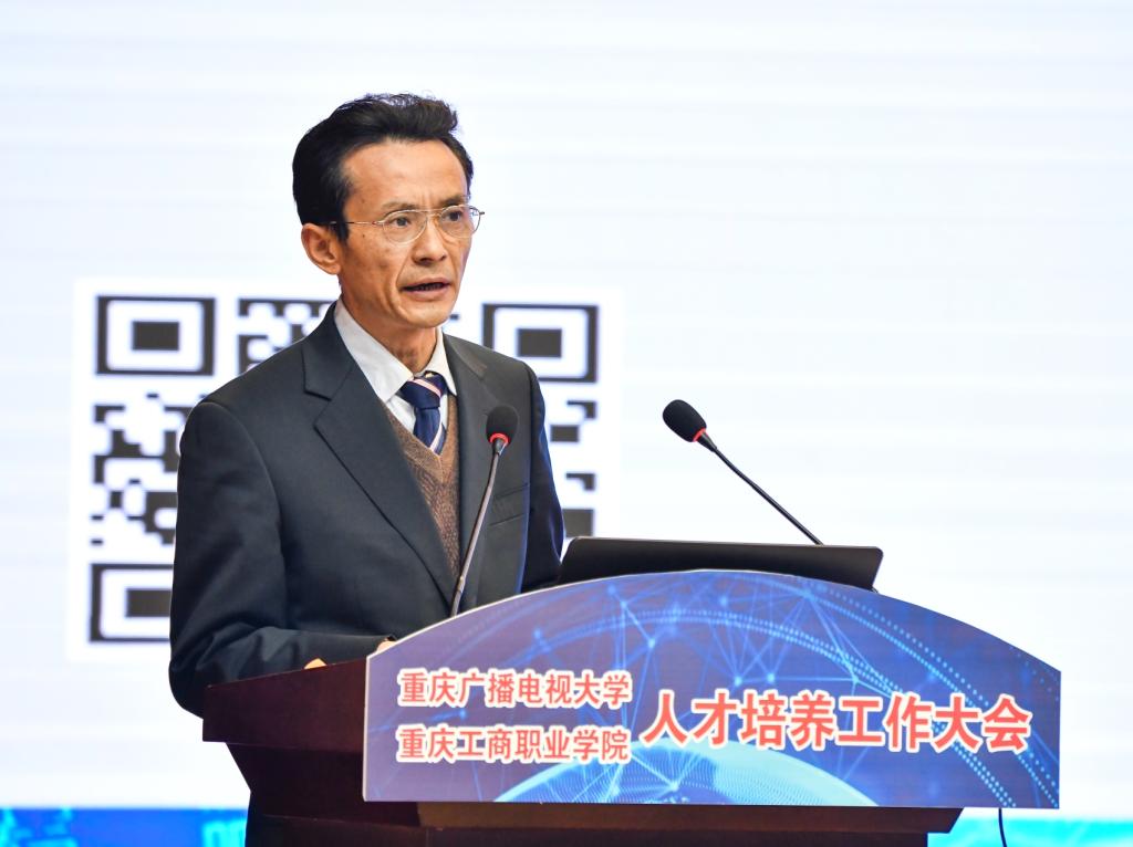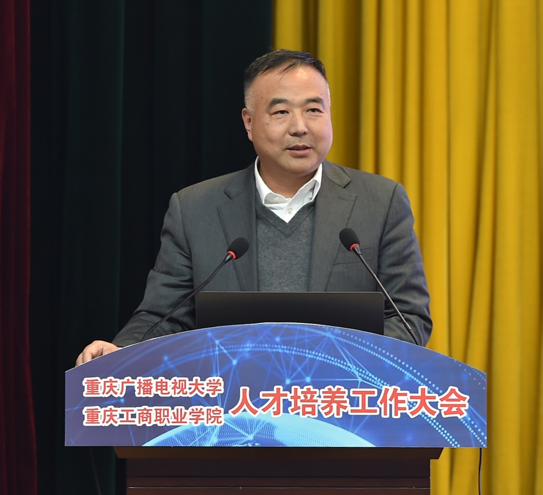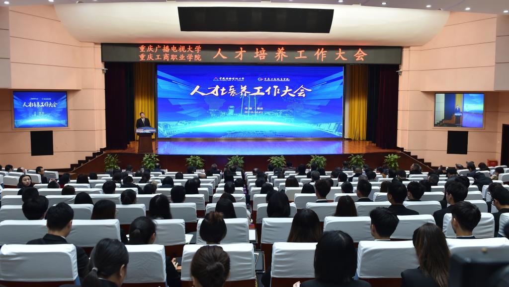 为深入贯彻落实全国教育大会和重庆市教育大会精神,提高学校人才培养质量,努力实现“互联网+双一流"的办学目标,12月21日,我校人才培养工作大会在合川校区科学会堂举行。重庆市高等教育学会常务副会长兼秘书长严欣平,四川广播电视大学党委副书记、纪委书记陈标,泰国教育部职业教育委员会苏菲娜,全校教职工,学生代表以及来自华龙网、腾讯云重庆、一汽大众、阿里巴巴淘宝大学等相关企事业单位代表出席了此次大会。通过视频会议系统直播,学校华岩校区和全市44所基层电大各分会场也同步参加了此次大会。华龙网对此次大会全程进行了网络直播。会议由副校长江涛主持。
