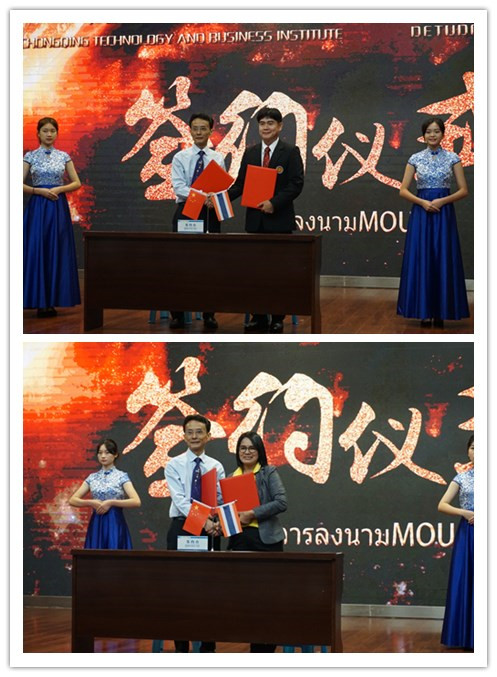 活动现场,校长李国代表学校与泰国德渡顿技术学院、泰国波它榄技术学院签署了合作备忘录。