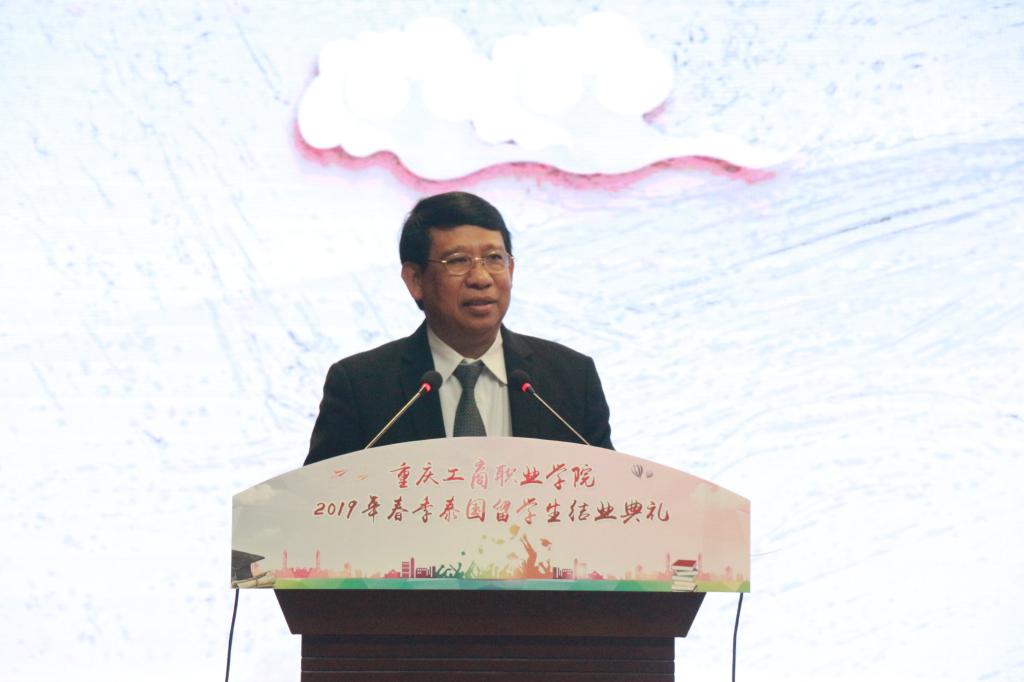 校党委书记郭庆在讲话中总结了近几年我校与泰国教育部合作取得的成效。他表示,中泰职业教育合作是学校国际化开放办学的标志性成果,在学校办学历史上有重要的意义。学校将依托“海外培训部”和即将在泰国设立的海外工作站,深化中泰合作项目的内涵,配合国际产能合作,共同为两国培养符合地方经济需求的技术技能型人才。郭书记同时以“笃行致远,筑梦扬帆”寄语即将回国的78名泰国留学生,希望他们继续前行,向着梦想出发,有机会常回学校看看。