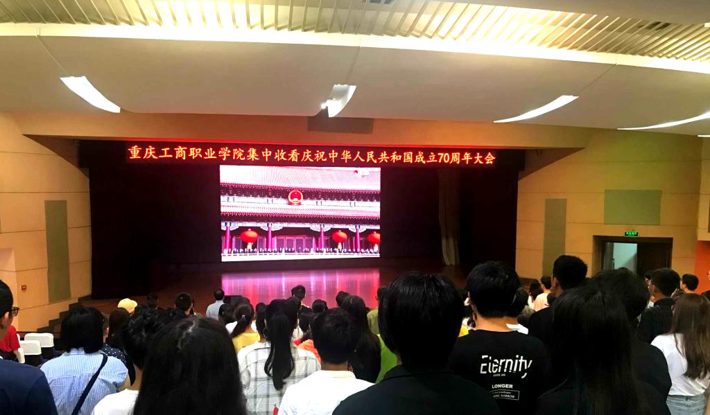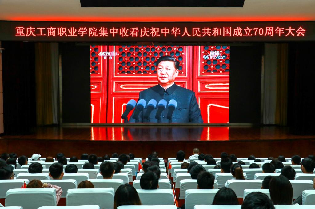 10月1日,庆祝中华人民共和国成立70周年大会、阅兵式和群众游行在北京天安门广场隆重举行。党委书记郭庆、纪委书记文传竹,与学校近千名留校学生分别在合川、华岩两个校区科学会堂集中收看实况直播。师生们认真聆听了习近平总书记在庆祝中华人民共和国成立70周年大会上的重要讲话,满怀自豪地观看了阅兵式和群众游行活动。