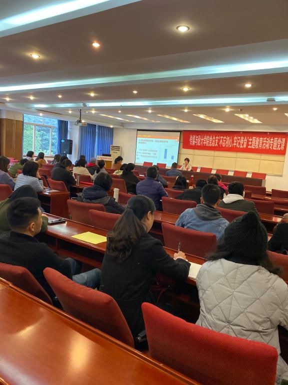11月21日,党委副书记周曦同志在华岩校区综合楼三楼会议室,为传媒与设计学院教职工讲授了“不忘初心、牢记使命” 主题教育专题党课。