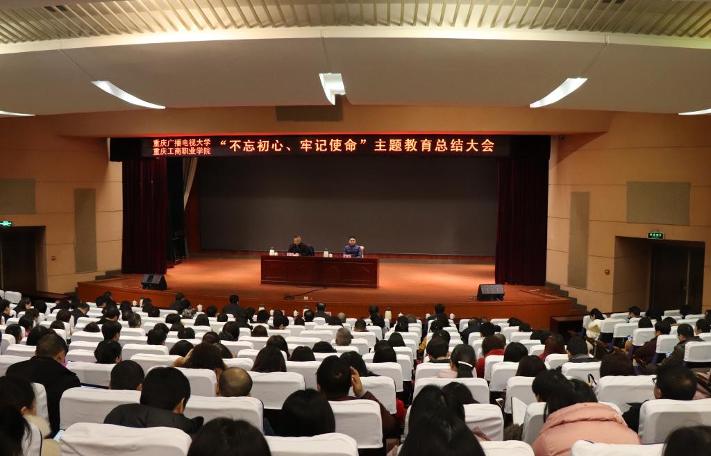 1月13日,学校“不忘初心、牢记使命”主题教育总结大会以双向视频方式在华岩、合川两个校区同步举行。市委主题教育巡回指导十四组副组长谢宾,学校全体校领导、全体教职工、部分离退休教职工、学生党员代表参加会议。会议由党委书记郭庆同志主持。