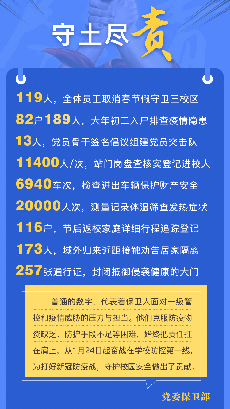 1月26日(大年初二),保卫部受命负责三校区疫情防控工作,当晚24点启动三校区封闭管理。