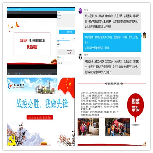 党员师生结合学习工作实际分享了心得。向晗璐老师表示,从冒着生命危险与病毒抗争的平凡人,看到了众志成城、克难攻坚的中国精神,看到了白衣天使的使命担当。杜沙沙老师表示,英雄精神是我们前行的力量,我们要将党员的先锋模范作用发挥在本职岗位上,按照停课不停学、停课不停教的要求,做好在线教学准备、优化教学方法、跟踪教学效果,确保教学质量。俊力同学表示,作为一名学生党员,虽然不能站在战“疫”第一线,做好居家防护,这也是对自己和家人、对社会和国家的责任。