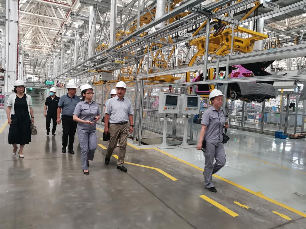 郭庆书记一行参观了重庆金康塞力斯(SERES)生产线,全面了解了冲压、焊接、涂装、总装、电池PACK等各产业链企业需求,双方围绕产教融合、校企合作进行了座谈交流。