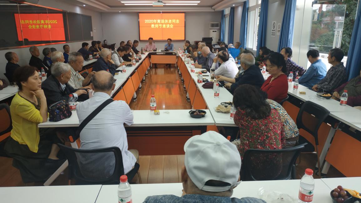 9月15日上午,离退休老同志教师节座谈会在石桥铺校区203会议室举行。80余名老同志齐聚一堂,共同庆祝第36个教师节的到来。李国校长及离退休处负责人出席了本次座谈会。