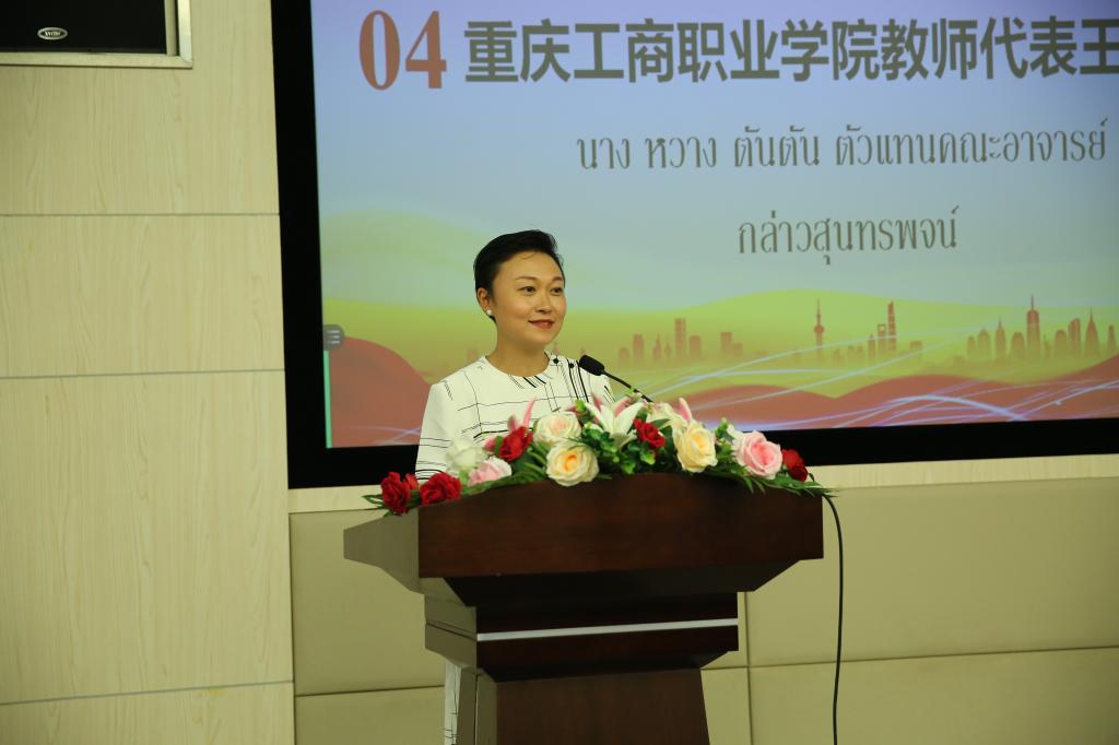 留学生代表刘泰君同学表示非常荣幸能够进入重庆工商职业学院学习,他将和其他同学一道尽快适应新的学习生活,努力学习专业技能和汉语知识,熟悉中国文化,努力做好中泰文化交流的使者。泰国素林职业学院副校长赛斯丽·赛玉女士感谢学校为泰国学生提供的学习平台,希望持续推进中泰职业教育合作,望泰国同学们努力学习,提高自身素质,学成归国。