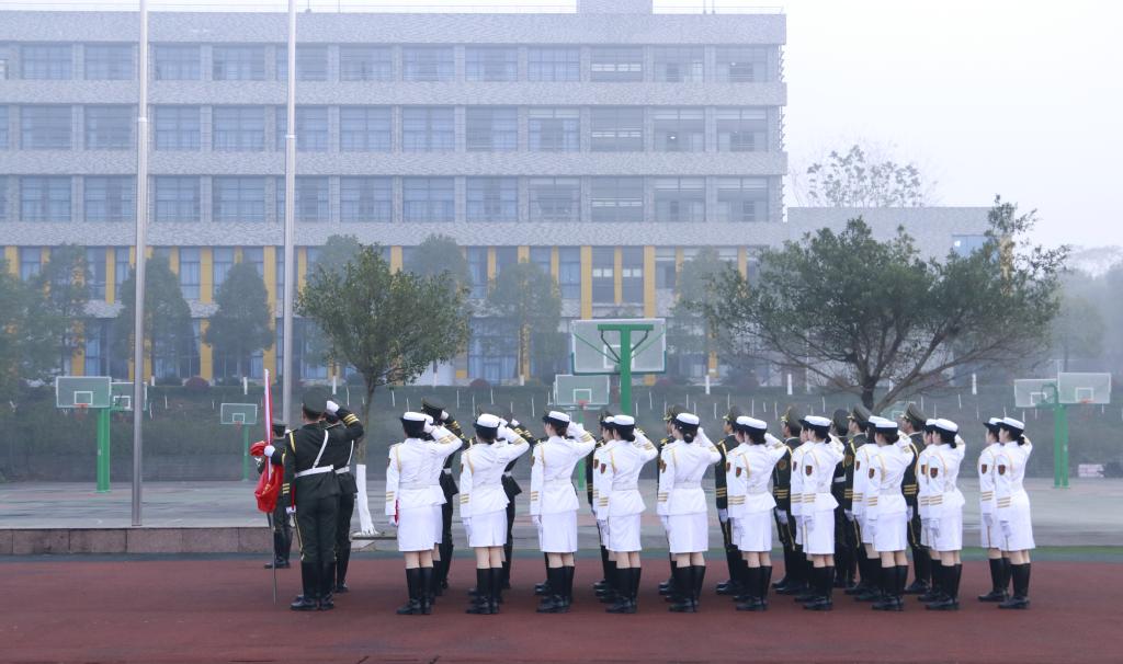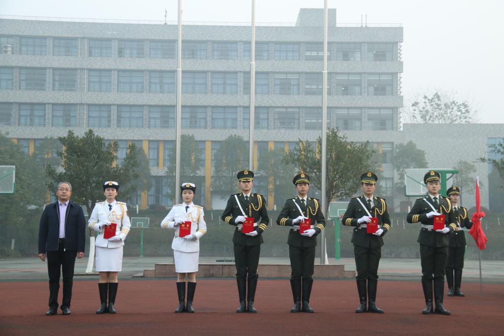 2021年1月1日8点,我校举行新年升旗仪式暨国旗护卫队成立仪式。党委副书记周曦为国旗护卫队授队旗,副校长刘昌雄为队员代表颁发聘书。