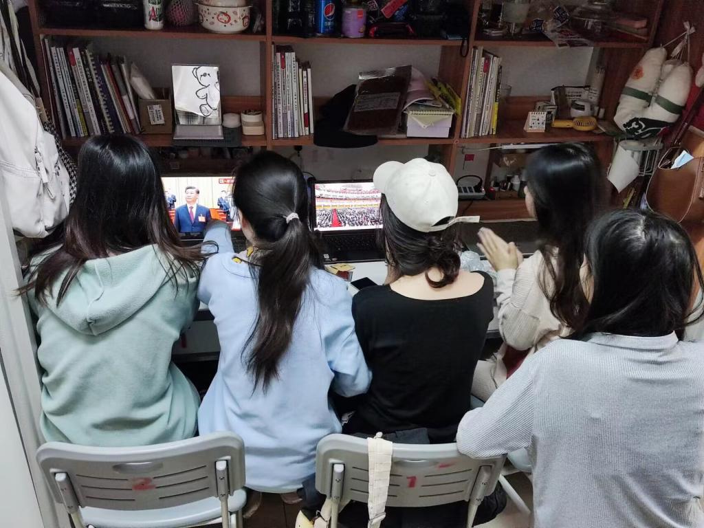 师生在寝室、家中、办公室等多地通过多种方式收听收看党的二十大开幕会