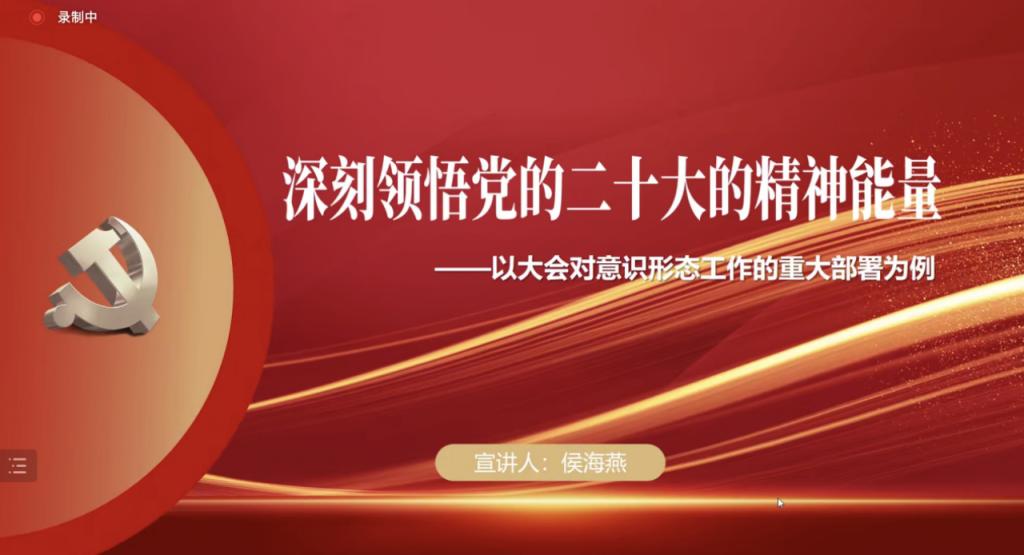 郭庆书记强调,要把党的二十大精神宣讲工作摆上重要议事日程,结合《宣讲工作方案》,围绕推动重点工作开展宣讲,通过精心组织宣讲活动达到聚焦队伍打造、聚焦理论阐述、聚焦课程思政建设、聚焦精神能量等四个目的,在宣讲中整体把握、全面系统、突出重点、抓住关键,把二十大精神讲清楚、讲透彻、讲明白,确保宣讲工作取得实实在在的成效。