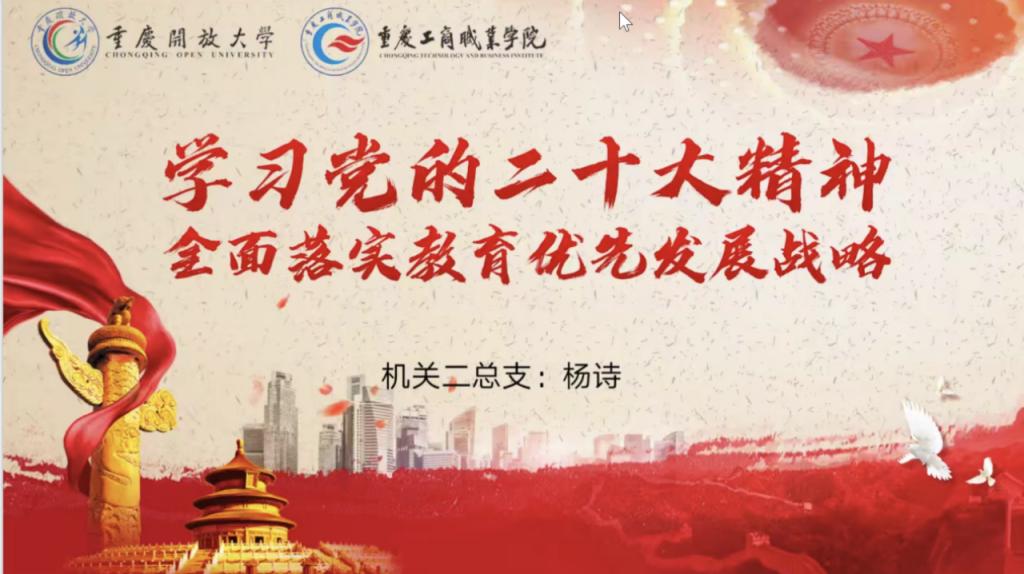 郭庆书记指出,党的二十大是在全党全国各族人民迈上全面建设社会主义现代化国家新征程、向第二个百年奋斗目标进军的关键时刻召开的一次十分重要的大会。市委六届二次全会是在党的二十大胜利闭幕后,全市上下深入学习贯彻党的二十大精神、全面建设社会主义现代化新重庆开局起步的关键时期,召开的一次十分重要的会议。必须坚持把学习宣传贯彻党的二十大精神作为当前和今后一个时期的首要政治任务,更加注重在拓展广度、延伸深度上下功夫,更加注重学以致用,深刻理解把握党的二十大精神的核心要义,切实把思想和行动高度统一到党中央决策部署上来,奋力书写中国式现代化的我校新时代教育篇章。