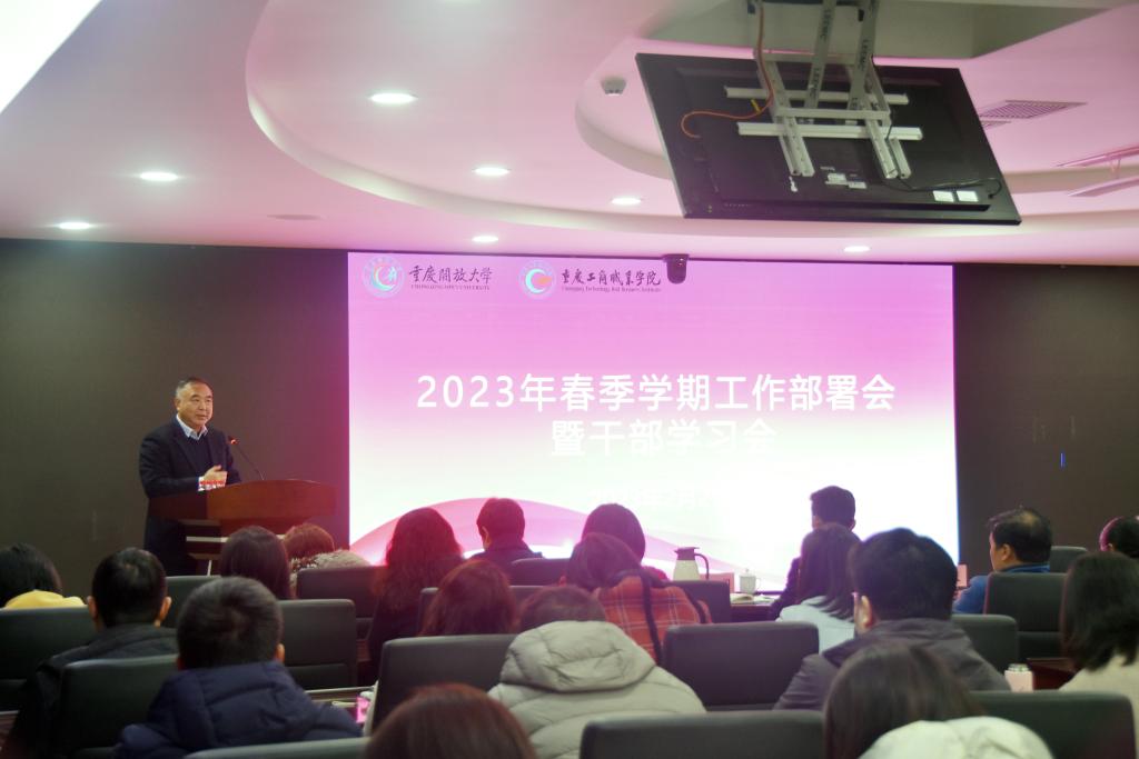2月21日,我校在华岩校区综合楼109会议室、合川校区行政楼220会议室召开2023年春季学期工作部署会暨干部学习会。会上,校长李国作了2023年度工作部署,党委书记郭庆作了学习贯彻落实党的二十大精神专题辅导讲话并对落实本年度重点工作提出工作要求。会议由党委副书记周曦主持。全体校领导,全校副科以上干部、各党支部书记、各教研室主任及副主任在两校区参加会议。