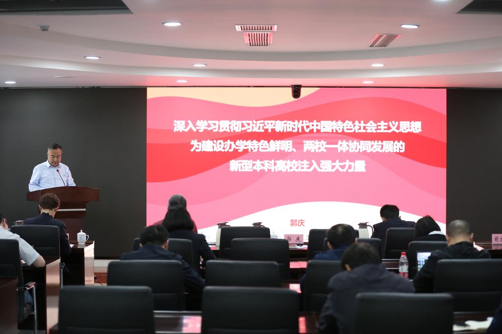 郭庆书记强调,要以习近平新时代中国特色社会主义思想指导实践,准确把握“新”的科学内涵,努力找准“新”的发展方位,加快实现“新”的担当作为。要聚焦育人体系再造工程、特色发展强化工程、优秀人才集聚工程、数字转型攻坚工程、办学条件升级工程五大战略工程,推动学校事业高质量发展。