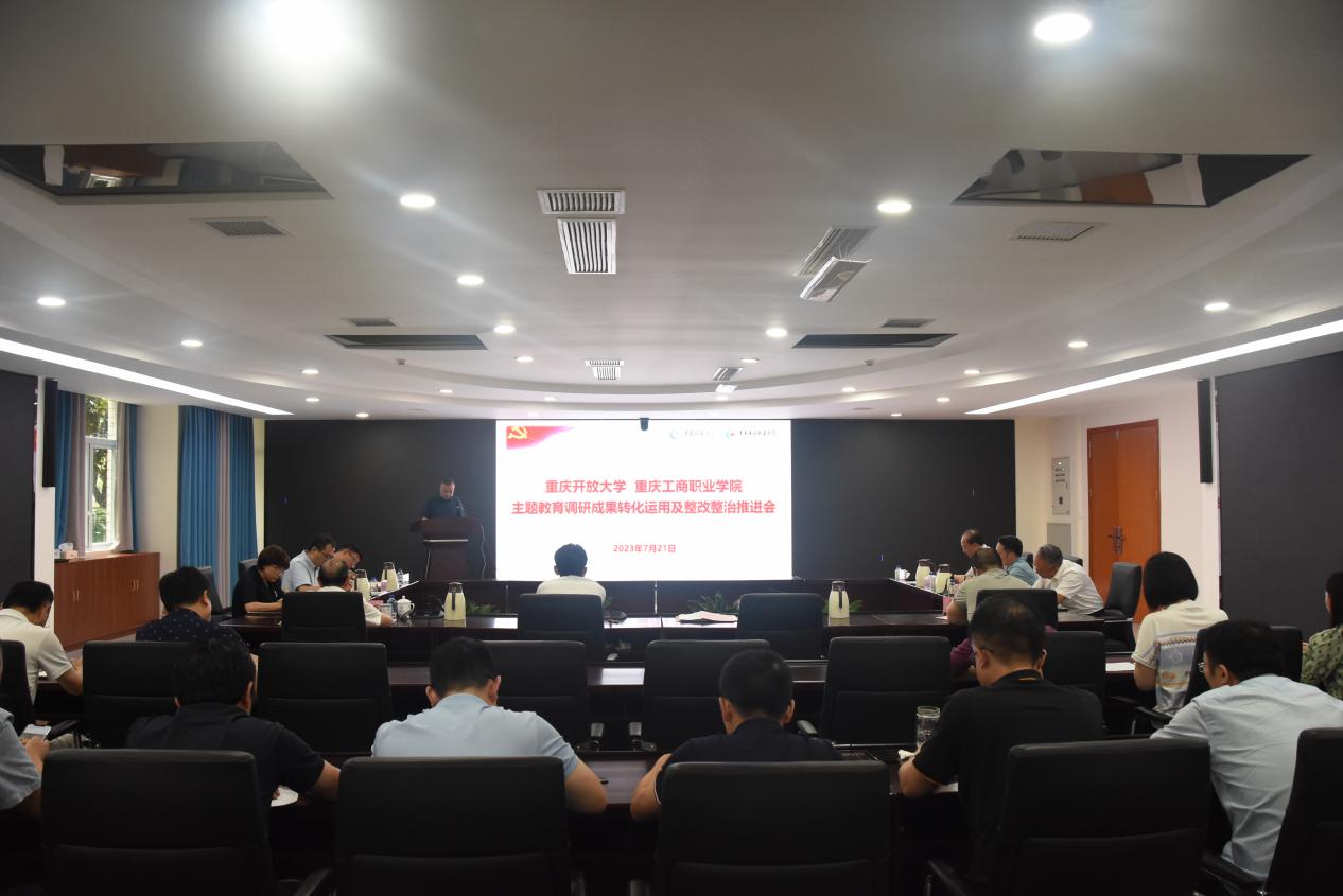 7月21日,我校在华岩校区综合楼109会议室召开主题教育调研成果转化运用及整改整治工作推进会。全体校领导、党委委员,各单位(部门)处级干部参会。市委巡回指导第十六组余春生同志莅临指导。会议由党委书记郭庆主持。
