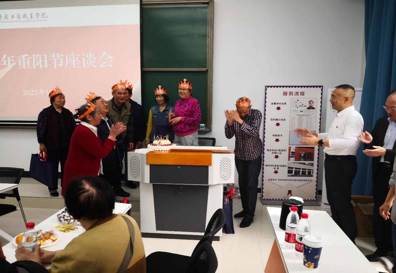 10月23日,农历九月九重阳节,近80名离退休老同志相聚石桥铺校区,共同庆祝属于自己的节日。党委书记郭庆,党委委员、党委组织部部长王剑华及相关部门工作人员与老同志们相聚一堂,开展重阳节座谈。