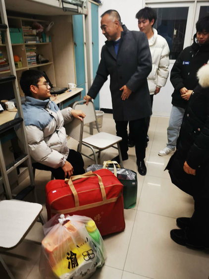 走访中,郭庆书记与同学们亲切交流,关心问候大家的生活情况和学习状况,并为同学们带去了棉被、保暖衣、牛奶等物资,鼓励大家积极乐观向上,有困难及时向学校和学院提出。在得知同学们正在专心备战专升本考试时,郭庆书记表示,学校将会提供更加丰富的学习资源与更加温馨的学习环境,为同学们备考助力。同学们也要及时做好职业规划和人生规划,进一步提升专业能力、现代商务能力、信息处理能力,努力成为高素质复合型人才,为成长成才奠定发展基石。