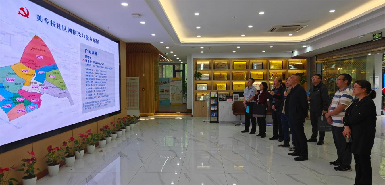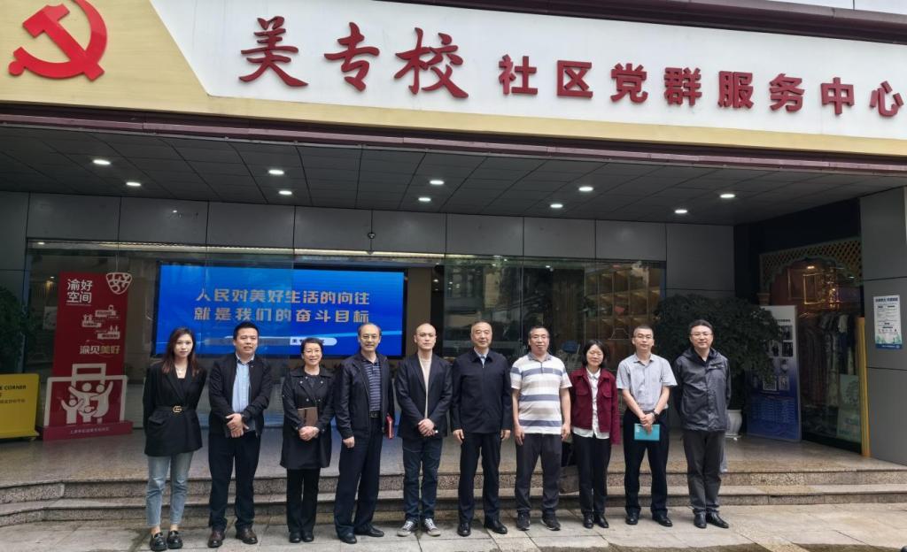4月25日下午,党委书记郭庆率学校数字化工作专班一行7人,赴上清寺街道美专校社区党群服务中心考察交流。
