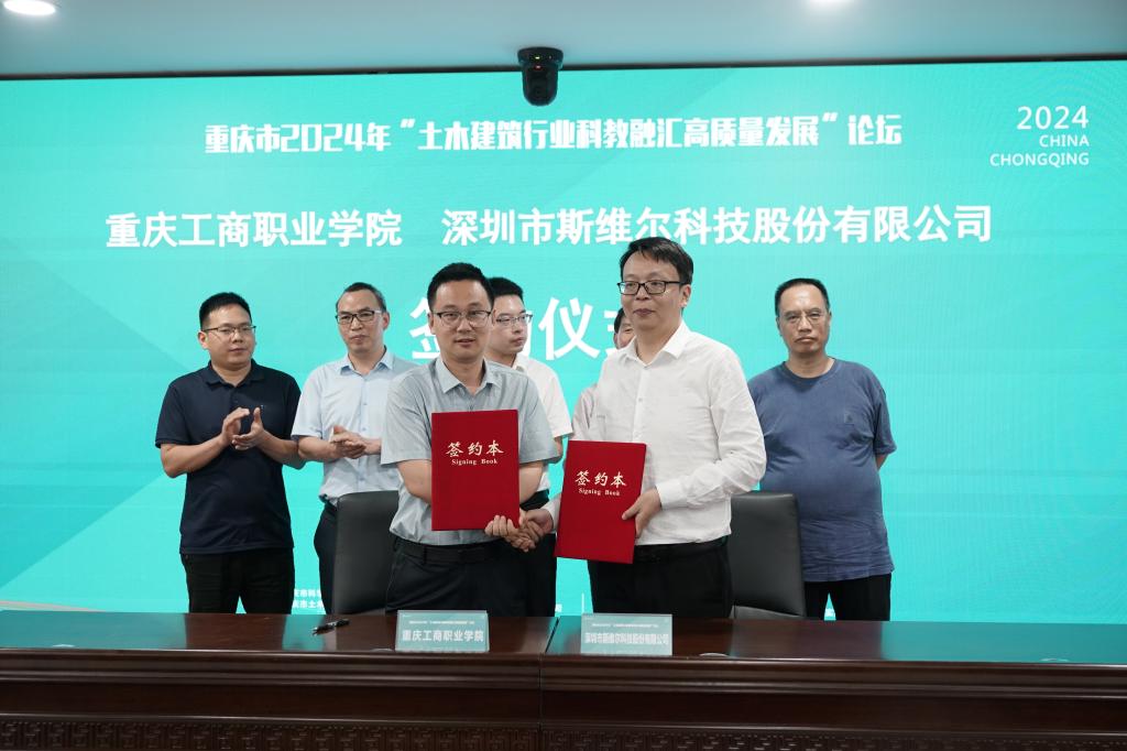 会议现场,重庆交通大学和我校分别与深圳市斯维尔科技股份有限公司签署校企合作协议。下一步,双方将在科教融汇、产教融合、人才培养、科研创新等方面将展开更加紧密的合作,服务土木建筑行业高质量发展。