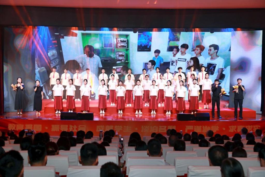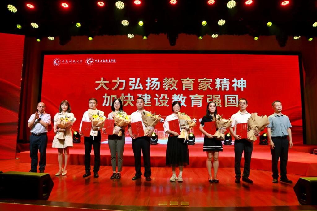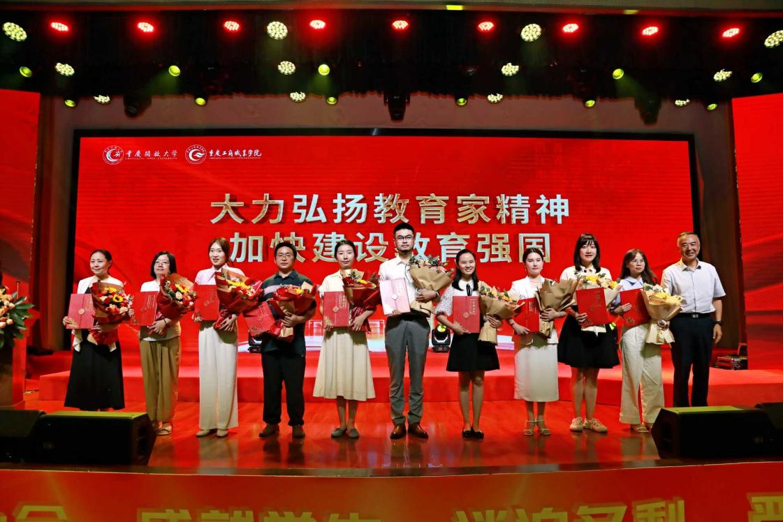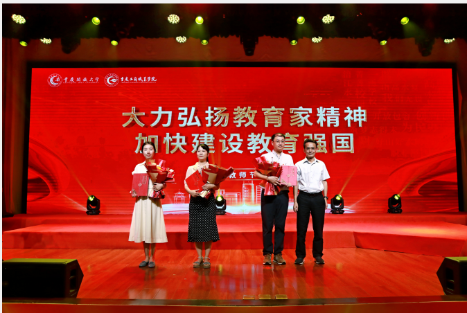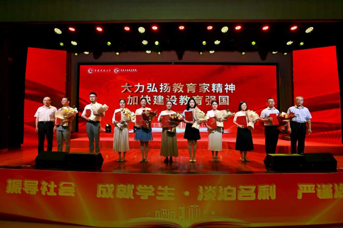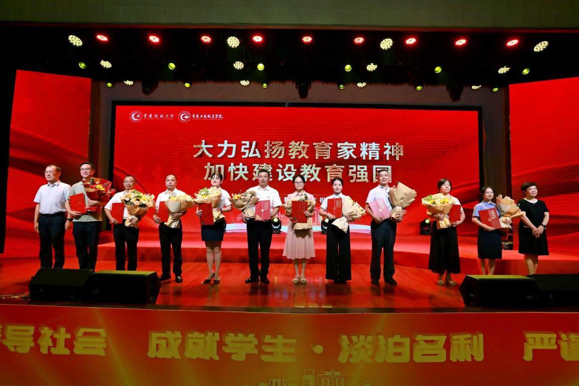 与会领导为获得教书育人楷模、优秀教师、优秀教育工作者、教学先进工作者、优秀班主任等受表彰教师颁发荣誉证书,学生向老师们敬献鲜花,并送上诚挚的祝福。